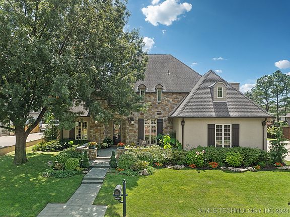 Beautifully updated home in the coveted gated community of Stonebriar Estates. Popular Jenks SE Schools. The owners have thoughtfully remodeled and added high end finishes at every turn to create a stunning home. New roof is being installed. Gorgeous backyard oasis with saltwater pool, spa, covered pergola, outdoor kitchen and mature landscaping. Hand scraped wood floors, and designer fixtures throughout. Kitchen is a chef's dream with ample cabinet space and an extra-large island with exotic granite and galley sink. Complete master remodel in 2022 with digital shower, heated floors, luxury free standing tub, chandelier and his and her closets. Spacious primary bedroom has sitting area with cozy fireplace. Second bedroom down with ensuite bathroom. Formal and informal eating spaces and formal office with fireplace. Guest bathroom has been fully remodeled with marble floor and under sink lighting. Two additional spacious bedrooms upstairs along with large gameroom, theatre room with surround sound and exercise room. Exercise room could be 5th bedroom. Abundant storage throughout the home with a large butler's pantry, walk-in pantry with soft close drawers, and walk-in closets in every bedroom. Side entry 3 car garage with inground storm shelter.