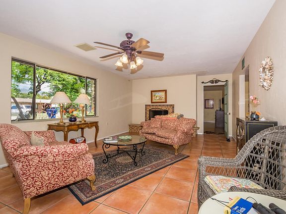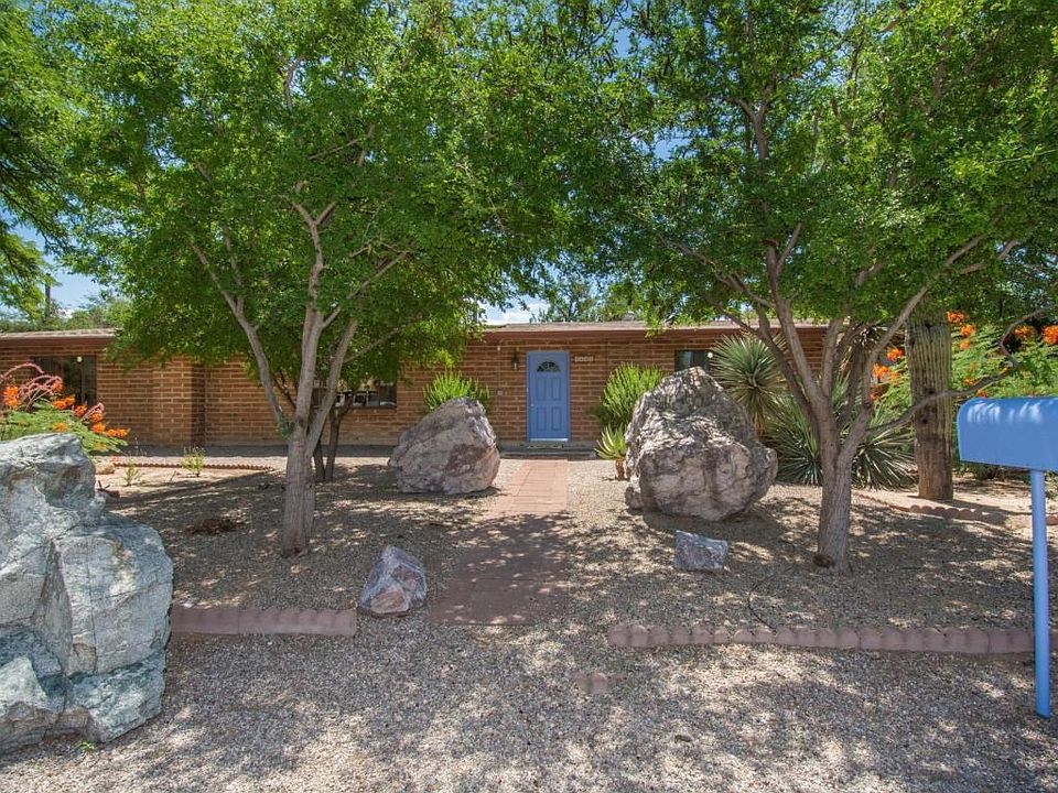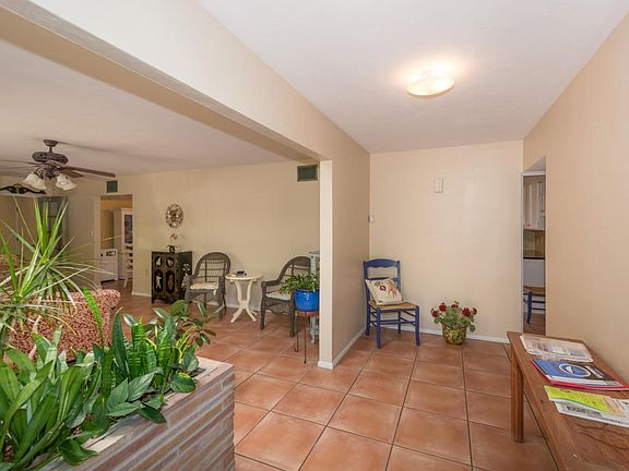This home is artistic, warm and has great natural light. It features tasteful colors, French doors, quartz counters and is reassuringly well built. It has personality plus and isn't a cookie cutter. In addition to the family room there is a large versatile room which is currently being used as an exercise room and for storage. The lot is extra large and it has mature fruit trees and three raised garden beds. The shed and carport have light and power. The front yard has gigantic decorative boulders from the Ajo mine. The home has an amazing passive and active rain water harvesting system that includes 2 cisterns (each one is 865 gallons), gutters, down spouts and storage basins. This tranquil home has country privacy right in town.