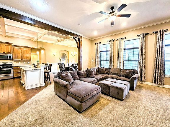 This 4 bedroom home was a custom build, not a spec house. You can tell by the custom carpentry throughout including cabinets, crown molding, and details in the 12ft. vaulted ceilings in the kitchen, dining area, and media room. We have owned this home since 2016 and are very particular so it has been kept well. Other details including the sprinkler irrigation system, security system, nest thermostat, jet tub, granite counter tops, outdoor fire pit, newly stained deck, newly refinished garage doors, huge garage, oversized water heater, set this home apart from others in this price range.
