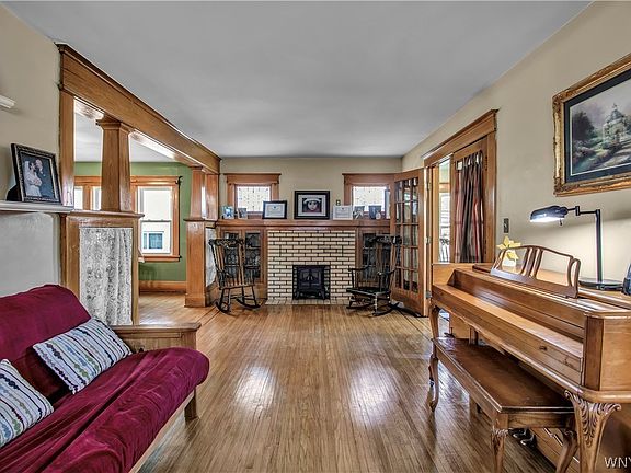 Here is your opportunity at an open floor plan home in the Smallwood portion of Amherst School District. The beautiful, traditional front entryway leads into the formal living with original built-in shelving and fireplace (NRTC). Elegant French doors lead into the front enclosed porch, perfect for an office, playroom or reading room. The path to the dining room is flanked by traditional leaded glass door built-ins. Significant care and effort was taken to open the floorplan, allowing the kitchen, dining room and rear family room to flow together seamlessly. Kitchen was remodeled in the last few years to feature SS appliances, granite counters and breakfast bar. The first floor full bath was fully remodeled in 2019 with new fixtures including a walk-in shower. The second floor has the 3 bedrooms including the oversized master with sitting room and two closets. Built-in closets add charm to the other two bedrooms. The 2nd floor full bath was also remodeled in 2019 and has a double vanity. Additional features include massive plumbing replacement ('19), roof ('08), driveway with turnaround ('10), 2 car garage, HWT ('19), replaced windows (most '21), floating deck with private rear yard 2022-05-18