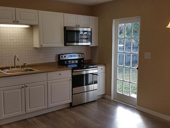 Recently updated 3 bedroom, 1 bath home with 1 car garage is ideal for first time home buyers, snowbirds or investors. The home features hardwood flooring throughout living/2 bedroom areas, large eat-in kitchen, as well as a large bonus/3rd bedroom,a fully fenced backyard which complements the nicely appointed 1 car garage attaching to the rear access carport and work shed area. Updates include new roof, kitchen cabinets, flooring, interior/exterior paint, ceiling fans/lighting/plumbing fixtures, stainless appliances, hardwood floor restoration and newer AC(approx. 2 years). All this situated in a quiet neighborhood yet offering convenience to restaurants, shopping, schools, and the beaches with no HOA. Don't miss this one.