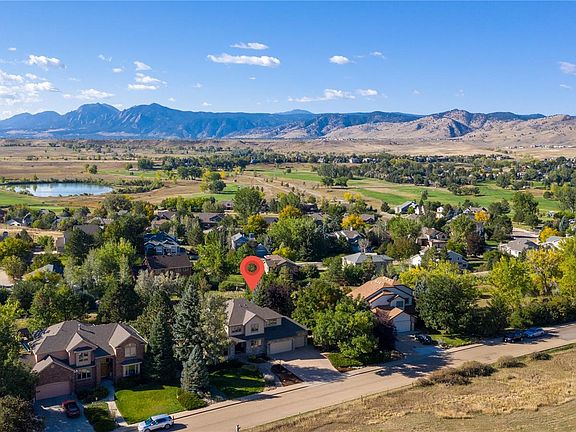 Stunning Flatiron views are yours from this elegant 2-story perched on a ridge at Lake Valley Golf Course & fronting private farm land! Remodeled to create an open floor plan, a gourmet kitchen with high end walnut stained cabinets, quartz & granite counters, SS appliances, huge island, & butler pantry with wine cooler. Gorgeous master with updated 5-piece bath, refinished hardwood floors, new railings, custom lighting, new trim & front door, updated laundry, new Pella windows, doors, & more! Enjoy the HOA amenities including park & play area, private lake, tennis courts, & open space trails!