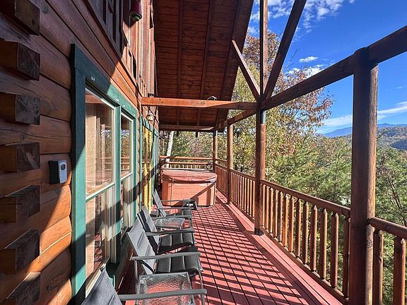 4 BR 3 BA cabin with beautiful panoramic views of the Smokies with Mt. LeConte front and center; just 5 minutes to the Pigeon Forge Parkway! Gleaming hickory hardwood floors with handsome tongue and groove walls throughout. Cathedral ceilings in the great room and an open loft with walls of glass to take in the breathtaking views! Tons of rental potential as this cabin has been very well maintained.