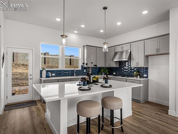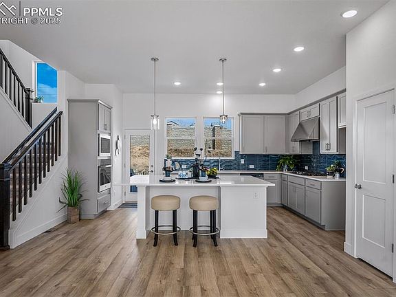 This new home in Trailside at Cottonwood Creek is meticulously designed to embody an exceptional fusion of energy efficiency, privacy and refined communal spaces. Timeless style and innovative craftsmanship combine in this breathtaking new home in Colorado Springs, CO. The first-floor sanctuary presents a myriad of possibilities, whether it's crafting a cozy den, a productive home office or a captivating family movie theater. At the heart of this home is a tasteful kitchen, seamlessly blending impressive aesthetic with practical functionality. The open layout fosters fluid movement throughout the main level, creating an inviting ambiance for gatherings and daily life. Infused with natural light streaming through energy-efficient windows, the open-concept family room, dining area and flex space exude warmth and vitality. Tucked away on either side of the shared bathroom, two guest bedrooms offer ample privacy and personal space for younger occupants. Meanwhile, the Owner’s Retreat epitomizes luxury living with its sleek Owner's Bath and a spacious walk-in closet, offering a serene haven for relaxation and rejuvenation. Completing this unparalleled living experience is the inclusion of a three-car tandem garage, seamlessly blending practicality with convenience, catering to modern lifestyles with ease.