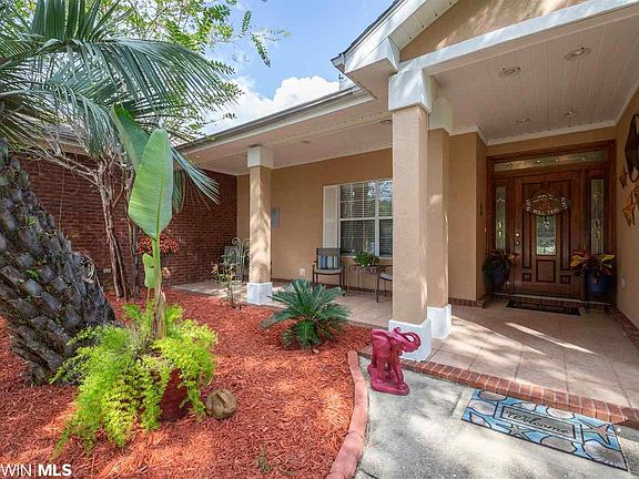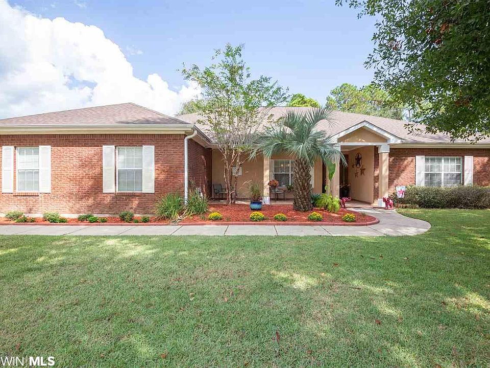 This beautiful very well maintained home in desirable Captains cove subdivision has so much to offer. First the location is close to everything. Shopping, dining, the beach and the NEW OB high school. Captains Cove features a community pool and exclusive boat launch that leads to Wolf Bay, all just a short walk away. Enjoy waterfront picnics and fishing too! The home features include; 4 bedrooms and 3 full baths. Split bedroom floor plan. Large great room with beautiful wood floors, high ceilings, french doors that lead out to the 400 square foot all season porch and beautiful back yard, and a natural gas fireplace for cozy winter evenings. The large kitchen has tons of cabinets, beautiful granite counter tops and a tumbled travertine back splash. Bar area and separate breakfast area too! There is a lovely dining room as you enter the house with the same beautiful wood floors. Master bedroom is very private and large. Master bedroom and bath boast brand NEW wood floors, 2 large closets, trey ceilings, lots of light and a on- suite with double vanities, jetted tub, separate shower and water closet. Split floor plan with 3 additional large bedrooms, all with brand NEW Carpet . Large 2 car side entry garage to fit your golf cart and additional parking for your boat. You have to see this home to appreciate all it has to offer. New roof in 2019, reconditioned HVAC in 2018. Upgraded Grinder in 2022. New paint and landscaping. Boat Launch access on Gulf Bay Blvd.