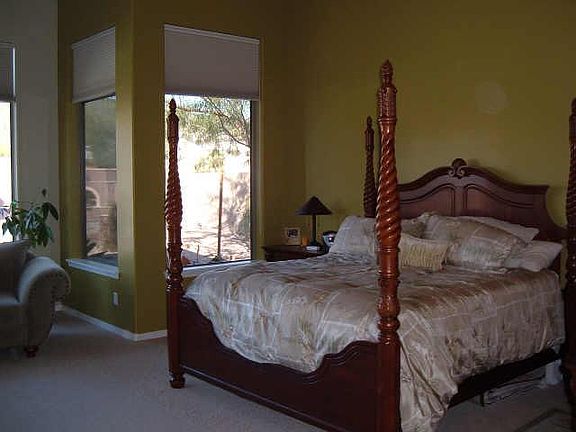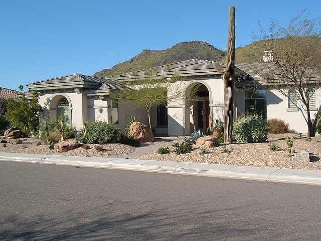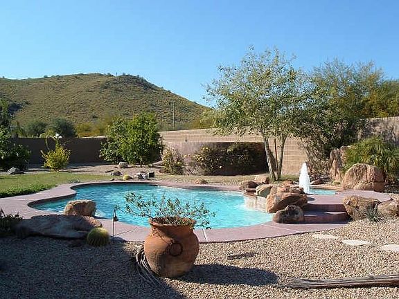WOW! THIS BEAUTIFUL HOME HAS IT ALL! NORTH/SOUTH LOCATON W/INCREDIBLE MOUNTAIN VIEWS. SPACIOUS EAT-IN KITCHEN WITH GRANITE COUNTER TOPS, UPGRADED CABINETS, GAS RANGE AND DOUBLE OVENS. NEUTRAL 18' STONE FLOORING THROUGHOUT. LARGE MASTER BEDROOM WITH HUGE MASTER CLOSET! CEILING FANS THROUGHOUT HOME INCLUDING PATIO. HOME SITS ON OVER 1/3 ACRE LOT. BACKYARD IS AN ENTERTAINERS DELIGHT WITH GAS FIREPLACE, BUILT-IN GRILL, AND HEATED POOL/SPA WITH VIEWS OF THE MOUNTAINS. THIS HOME IS A MUST SEE!