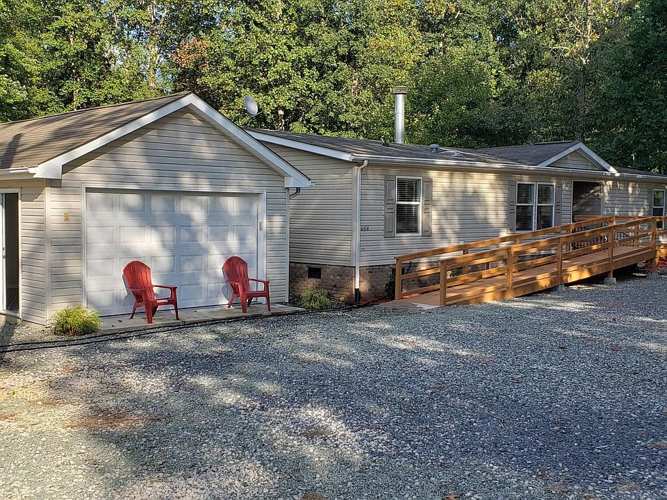 f you have been waiting for a home that has it all...the wait is over!! 3 bedroom, 2 bath, vaulted ceilings in living room, wood burning fireplace, large back deck for entertainment, clean new carpets, easy access ramp to front door. Almost 2 acres, detached garage with small office, ample parking. This home is already connected to a generator for power outages back up. This place has so many options and potential for anyone's imagination, come check it out. one month security deposit