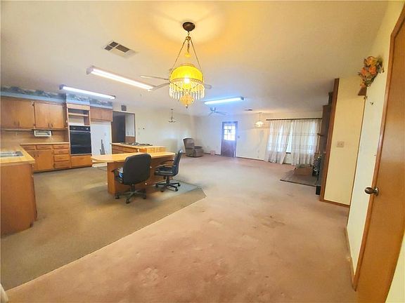 40 acres with a pond, several out buildings and a barn accompany this open concept home. The home boast a large kitchen with a gas cook top, built-in wall ovens open to the living area. The enclosed sun room would make a nice study or den. 3 bedrooms, 2 baths. Large laundry room with a sewing nook or desk area. Numerous closets, plenty of storage. The home is dated, needs new flooring and fresh paint. Very nice metal roof. All offers will be seriously considered. Conventional, FHA or Cash