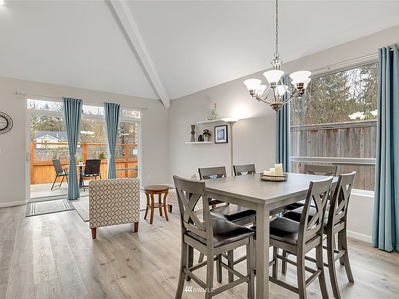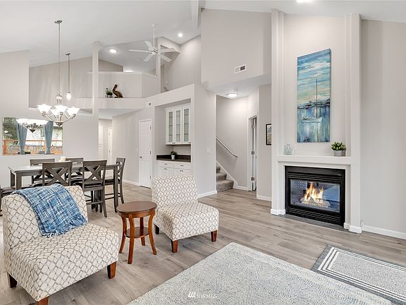 Updates abound in this light & bright 2-story attached single family home on cul-de-sac. Open living area w/vaulted ceilings, dining room w/built-in buffet & living room w/cozy gas FP + slider to fully-fenced backyard/patio. Home abuts to greenbelt. Remodeled kitchen w/workstation sink, new counters & new cabinets w/undermount lights + color change lighting above. New gas range in 2021. Wine rack + pantry w/pull-out drawers. Main floor bed w/walk-in closet, en-suite full bath & 2nd closet. High-end vinyl plank on main. New carpet upstairs in 2020. 2 beds up + full bath & large storage room. Landing makes for great home office. 2-car attached garage. Easy commuting + minutes to Alderwood Mall & Meadowdale Beach. Community sports court.