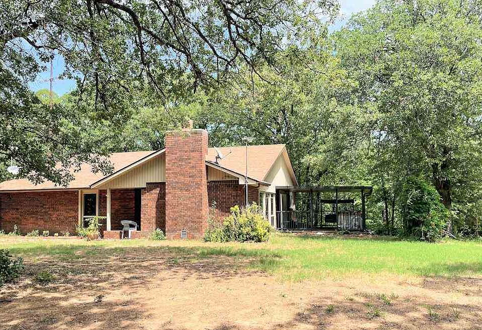 Secluded & Nestled in Trees this Brick home on approx. 3.5 acres is a must See! Many updates throughout! New flooring, kitchen updated w/solid surface countertops & beautiful cabinetry w/lg eat-in dining area. Living room has a wood burning fireplace. There are 3 spacious bedrooms & 2 full baths. The main bedroom has en-suite bath w/onyx shower surround & bathroom countertops. There is also a lg. recreation! Covered patio perfect for watching wildlife. Detached 20 x 24 garage, 20 x 24 shop, 8 x 20 conex!