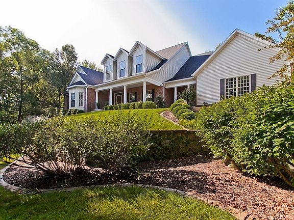 Could not duplicate this in town wooded acreage in very desirable neighborhood with county taxes. Front yard and back very private with large front porch. Out back door is Belgrade patio with fire pit and fountain. Home has open concept for today's lifestyle. As you enter front door vaulted ceilings to open second story. Enter into a 16' great room with ceiling high cabinets. Kitchen has been updated, white cabinets, Brazilian cherry floors, bar, spacious pantry, double ovens, and granite. Kitchen has large sitting area plus opens into a large eating area. All across the back of the home are windows to enjoy the private back yard. French doors open from the great room to dining area. Extra large bedroom on main floor with spacious bath and master closet. Gas fireplaces in great room and lower level. 1790 square feet in lower level walkout has ample room for pool table, 2 ample sitting areas, large bar for entertaining.
