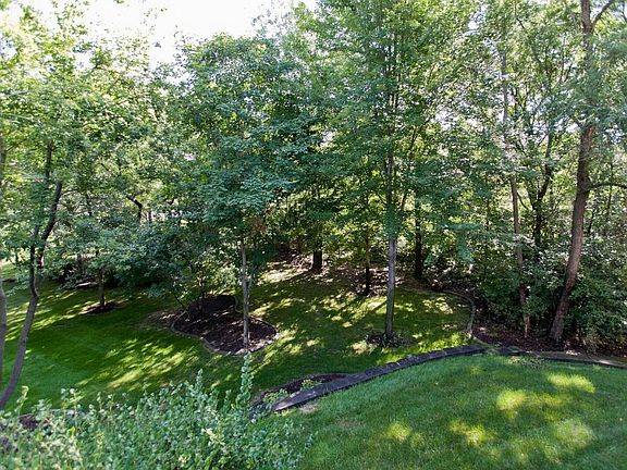Could not duplicate this in town wooded acreage in very desirable neighborhood with county taxes. Front yard and back very private with large front porch. Out back door is Belgrade patio with fire pit and fountain. Home has open concept for today's lifestyle. As you enter front door vaulted ceilings to open second story. Enter into a 16' great room with ceiling high cabinets. Kitchen has been updated, white cabinets, Brazilian cherry floors, bar, spacious pantry, double ovens, and granite. Kitchen has large sitting area plus opens into a large eating area. All across the back of the home are windows to enjoy the private back yard. French doors open from the great room to dining area. Extra large bedroom on main floor with spacious bath and master closet. Gas fireplaces in great room and lower level. 1790 square feet in lower level walkout has ample room for pool table, 2 ample sitting areas, large bar for entertaining.