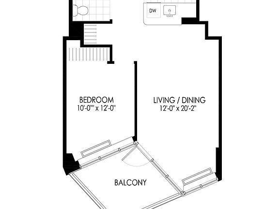 Stunning 1 bedroom apartment featuring high ceilings an open kitchen, spacious living/dining area, and private balcony with sunny southern exposure and partial river views.