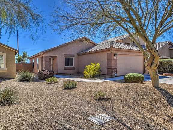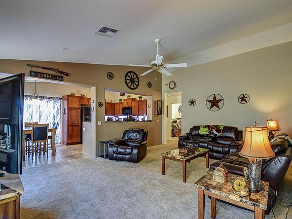 This lovely 3 bed 2 bath home is located in beautiful Copper Basin. Enter into the cozy living room w/ vaulted ceilings. The kitchen offers vaulted ceilings, recessed lighting, black appliances, cherry staggered cabinets complete w/ hardware, laminate granite-look counter tops, & custom under cabinet lighting. The master bedroom includes a bay window & walk in closet. The master bath provides a double vanity, shower/tub combo & large ceramic tile. Down the hall are two more bedrooms & a hall bath. The backyard is set up for entertaining w/ an extended patio, & above ground spa! The desert landscape not only creates the perfect atmosphere, but provides privacy as well. The home also offers security cameras, wired surround sound, & could be turn key ready!