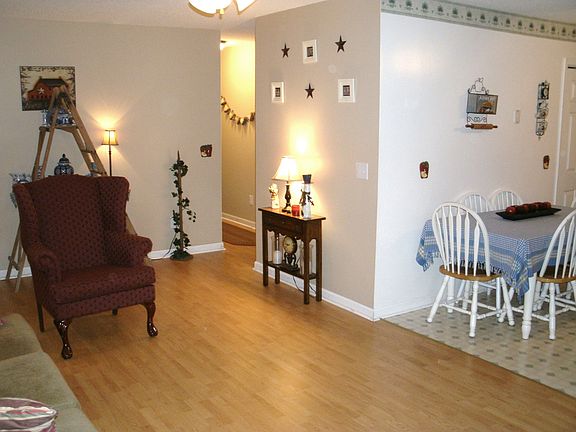 Charming 3 bedroom / 2 bath move in ready home located conveniently to restaurants and shopping. One level living with laminate flooring throughout home creates a welcoming feeling. Eat in kitchen with lots of cabinets flows easily into comfortable living room with wood burning fireplace. Full rocking chair front porch and oversized deck with fenced backyard offer ideal entertaining spaces (storage building remains).