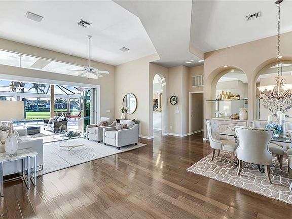 Welcome Home to 4615 Lighthouse Lane, where it's truly "Better by The Bay"! Situated in the exclusive Harrington Sound neighborhood within the amenity-rich Windstar on Naples Bay community, this unique and charming home is designed to make the most of its expansive double lot. Offering panoramic golf and lake views along with mature landscaping, this home seamlessly blends indoor and outdoor living while ensuring privacy and tranquility. With over 4,100 square feet of living space under A/C and an additional 2,190 square feet of outdoor living area, this residence is both spacious and cozy. It's thoughtfully designed for daily living, hosting friends and family, and entertaining guests of any size. The home features 4 bedrooms, 4 baths, a den, and an oversized 3-car garage. At the heart of the home lies the Great Room, where the kitchen, morning room, and family room open to the outdoor lanai, pool, spa, and a private patio retreat—ideal for enjoying Florida's beautiful weather. Soaring ceilings and recently installed hurricane-impact windows and doors flood the home with natural light. On the south end of the home, the primary suite offers direct access to the pool and breathtaking views. This suite includes a large sitting area, dual walk-in closets, and an updated spa-like bath. The adjacent den features a custom-built desk and floor-to-ceiling cabinetry, providing a perfect space for work or relaxation.VOn the north end, the visitor or guest quarters consist of three generously sized guest bedrooms, each measuring 14 x 14 feet, with two accompanying guest baths. This home is equipped with a range of special features and recent updates. It boasts a majestic circular driveway with ample guest parking, professional landscaping, a whole-house audio system, and a security system. Significant updates include newly installed hurricane impact windows and doors in 2024, an updated master bath in 2023, new HVAC and hot water heaters in 2024 and 2022, a new roof in 2021, and a new pool heater in 2025. The outdoor area is enhanced by custom-designed lanai cabinetry and a pool screen enclosure, complemented by a newly laid travertine pool deck. The modern kitchen and a gas-powered generator further add to the home's appeal. Experience the effortless elegance and comfort of this extraordinary home at 4615 Lighthouse Lane — your oasis of peace and luxury awaits! As a Windstar resident take advantage of the Keewaydin Queen’s nautical adventures (Sunset Cruises, Special Events and Private Charters) and enjoy the Windstar beach at Keewaydin Island. For additional “It’s Better by The Bay” lifestyle experiences and extensive amenities, you can join The Southpointe Yacht Club or The Windstar Club. A tour and visit to either will WOW you! “Welcome Home - It’s Better by The Bay!”