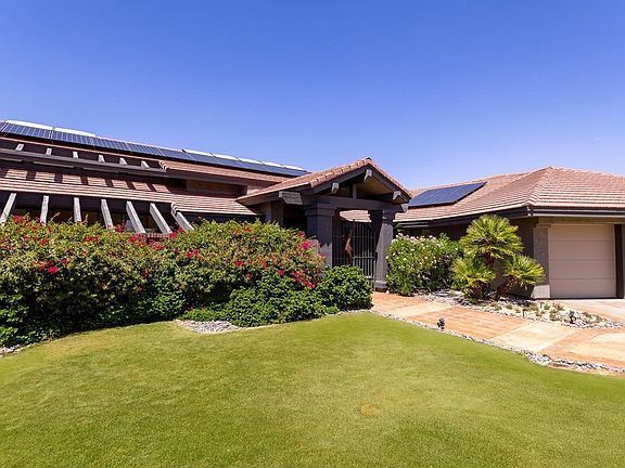 Secluded, yet open and airy, your guests will enter this contemporary ranch style home through a lovely walled courtyard with outdoor spa. The main living area, dining room and spacious kitchen are designed for indoor outdoor entertaining. Enjoy views of the Rams Hill golf course, the Santa Rosa mountains and peninsular ranges from the patio. Carefully designed, no detail was overlooked in this spacious home of almost 3000 square feet, all on one level. Built in cabinetry, vaulted ceilings, and natural light abound. Owned solar. There are three generous bedrooms, two with en-suite baths. The master suite contains a luxurious spa-like bath retreat. Outside, beautiful, low maintenance hardscape draws your eye to the sculptural and stark beauty of the desert, majestic palms and ocotillo. The orientation of the home assures a spectacular sky at sunrise and sunset. A community tennis court, pickle-ball court, jacuzzi, and BBQ facility are close at hand.This home is set in the tranquil gated community of Ram's Hill, adjacent to dedicated open space, and the gorgeous Anza-Borrego Desert. A truly inspiring home in which to make great memories! 2022-10-16