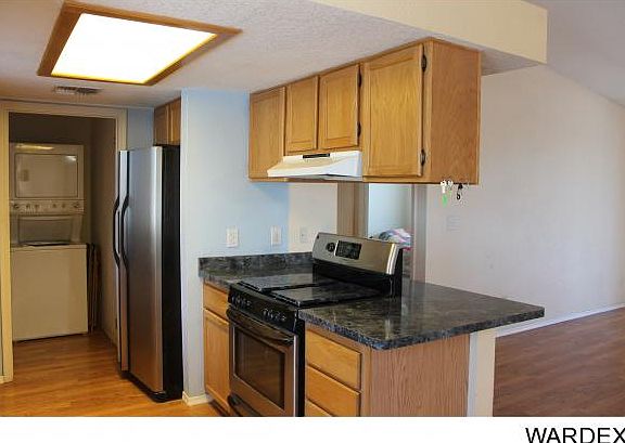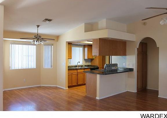 Make this happy home yours. Laminate floors through main living areas and the second bedroom. Corner fireplace and vaulted ceilings give this living area a welcoming feel. Dining area is spacious for large family table while the kitchen offers breakfast bar too! Master bedroom is large and the bath offers double sinks, garden tub and walk in closet. 2nd and 3rd bedrooms are spacious. Big backyard is fully fenced with block wall, double side iron gates for full access to backyard makes for great additional parking for toys and trailer. Large shed in back with power. Covered back patio with great views of the local mountains. Washer/Dryer and Refrigerator stay. Homes only community within walking distance to Dandy Donuts and Bonanza Cafe!
