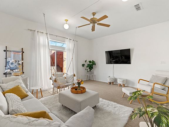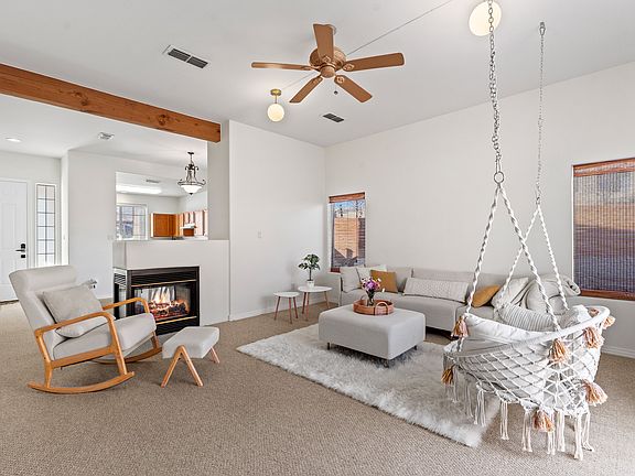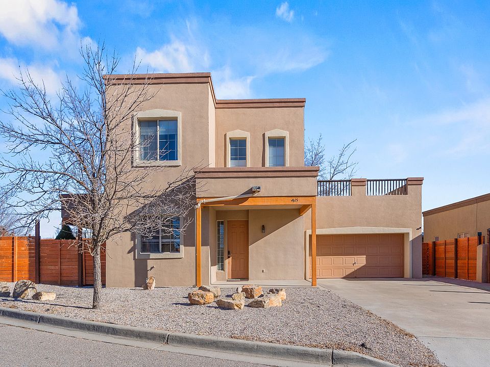 Set on a prime corner lot in one of the area’s most desirable neighborhoods, this beautifully maintained home offers an exceptional blend of space, comfort, and Santa Fe living—with no HOA dues. Conveniently located near schools, parks, and community amenities, it’s ideal for both growing households and those seeking an established, welcoming setting. The 1,856-square-foot two-story residence features 3 bedrooms, 2.5 baths, and a 2-car garage. Inside, soaring ceilings and abundant natural light create an immediate sense of openness. The spacious kitchen is well designed for daily living and entertaining, with generous counter space, a gas range, and easy flow to the dining area. Sliding doors lead to a large, fenced large backyard—perfect for outdoor dining, gardening, play, or relaxed gatherings. The inviting living room is anchored by a striking two-sided gas fireplace and enhanced by soft window treatments that add warmth and elegance. The main level also includes a convenient powder room, a generous laundry room with direct backyard access, and ample storage. The attached two-car garage offers space for vehicles, gear, and storage. Upstairs, three light-filled bedrooms provide comfort and privacy. The primary suite enjoys views of the Sangre de Cristo Mountains and features an en-suite bath with dual vanities, soaking tub, and walk-in shower. Two additional bedrooms share a well-appointed hall bath, ideal for guests, family, or a home office. An expansive upper-level deck is a true highlight—perfect for morning coffee, sunset skies, and Santa Fe’s star-filled nights. Move-in ready and thoughtfully designed, 4615 Sunset Ridge offers generous indoor-outdoor living in a sought-after location. 4615 Sunset Ridge belongs on your must-see list.