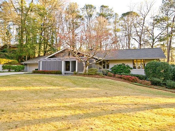 Fantastic mid-century modern home on 0.8 acre with room for a pool, located a short walk from Chastain Park. Chatham built, this home has been beautifully maintained/ updated over the years by one owner. There are so many possibilities for this property. Or just move right in. Pella floor to ceiling windows and doors make for bright and light airy vaulted public rooms. Pretty hardwood floors are throughout the main level with exception of kitchen tile. Arrive through covered front entry porch into large foyer with slate floor and vaulted ceiling. Oversized living room has views into professionally landscaped courtyard; dining room with original mid-century wall covering can seat 12. Eat in kitchen with vaulted skylight ceiling, classic walnut cabinetry/lots of cabinets for storage. The kitchen breakfast room and fireside family room both open to terrific, vaulted sunroom with slate flooring and custom lighting. Sunroom Pella doors open on all sides to a large wrap around deck with fun catwalk. Gracious front to back primary bedroom has a dressing area plus a sitting area with views over the wooded property. The primary bedroom also has his and hers closets and an en-suite bath with double vanities and large soaking tub/shower. 2 additional bedrooms, one full bath and a powder room on main. Also on main is large laundry and utility room with half bath off the kitchen and 2 car garage. Stepless garage into kitchen. Storage galore. Terrace level is a WOW! Finished full daylight. Fireside great room with high beamed ceiling. Media/game room with kitchenette. Oversized bedroom/office, full bath and another guest bedroom. Unfinished storage room. Walk out to backyard/ patio. Yard is professionally landscaped. Beautiful private wooded lot. 2021 property taxes under appeal.