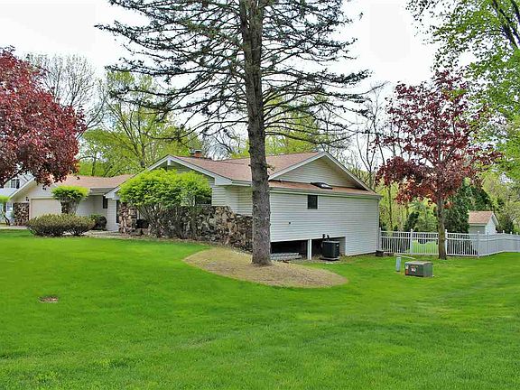 This is your chance to own a one of a kind property with almost 1 acre of land & over 3711 finished square feet. This sprawling 4 bedroom, 4 bathroom + 4 car garage ranch is placed on a private park like wooded lot. Entering this home you will be greeted w/ a large great room that features a cozy fireplace, large windows w/ views of the private back yard & access to the 3 seasons room. Around the corner from the great room is the spacious eat-in kitchen that features many cabinets for storage & additional access to the 3 seasons room. The 3 seasons room is the PERFECT place to enjoy this property. It features windows that run the entire back wall & also includes skylights. The main floor throws in 2 bedrooms both have their own en-suite bathroom, an additional half bath, main floor laundry & a tandem 4 car garage w/ direct access to the basement. The basement adds 2 additional bedrooms, an additional full bathroom, a large rec-room, & playroom. New roof 16, new ac 15, new siding 09.
