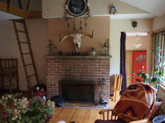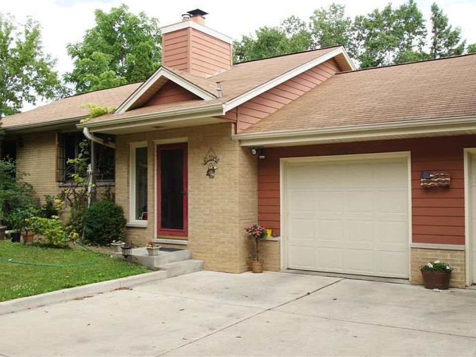 Beautiful unique well maintained ranch house tucked away in wooded privacy. Maintenance free exterior, concrete drive, stamped patio and a hot tub! Open concept interior with 3 good size bedrooms. Living Room with NFP, cathedral ceiling and Red Oak HWF. Updated kitchen with Red Oak HWF. Main floor huge laundry room. Loft (has low ceiling other room) area overlooks open concept kitchen and GR . Oversize garage with loft area and patio door to back yard. Partially finished basement with full bath.