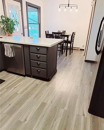 This beautiful 3-4 bedroom house offers many recent updates. Updated kitchen, bathrooms, and flooring in many rooms. The house offers a newly built back porch, along with a new metal roof! This house offers a woodstove also. There are many unique features to the home including the sunken living room. The basement has been B-dry waterproofed and finished for ample living space . Waiting for the new owners to enjoy the fantastic front porch view!!