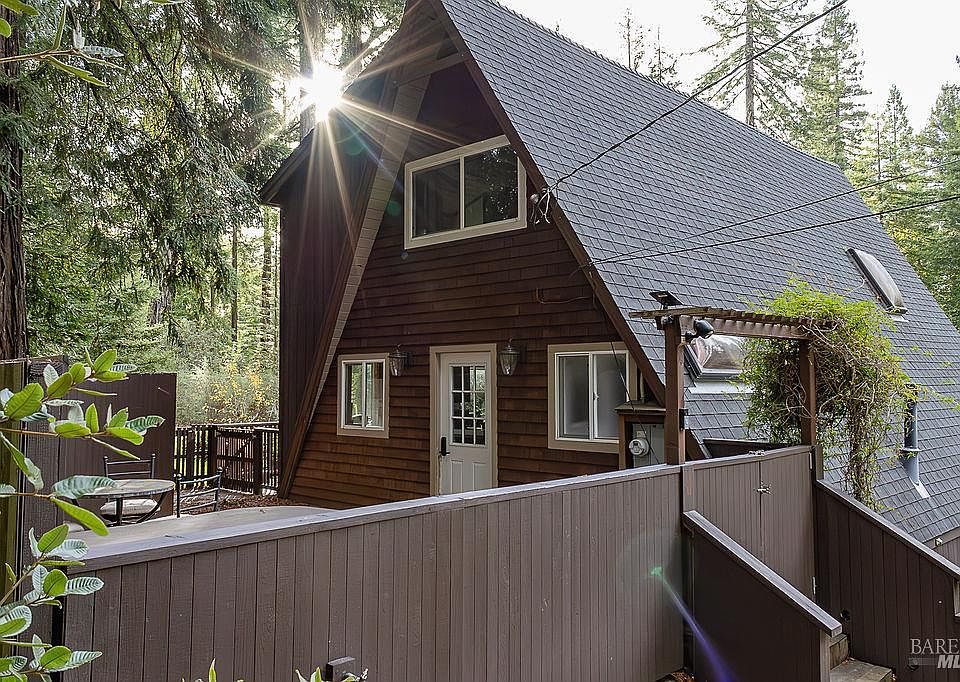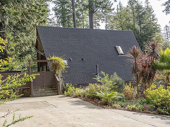 Misty Woods cabin is a beautifully renovated A-Frame with charm and ambiance. The home features an open Chef's kitchen, new dining/living area, two bedrooms and a full bath. Also included is an extra room with washer and dryer that can be used as a home office. Access for showing this space is below the house near the garden. There is a beautiful slate porch with a large hot tub and multiple decks located in the front and back of home. This quaint homestead offers a custom outdoor shower and a large garden area that adjoins 2 chicken coups. The open lot allows for beautiful sunny weather in the summertime. Close to downtown, beaches, art galleries, restaurants, services and recreation.