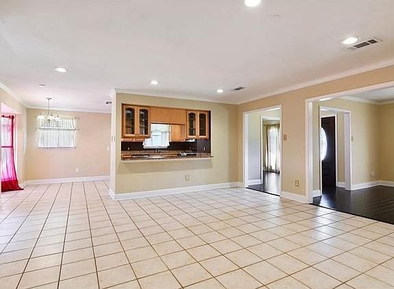 Beautifully updated home w/open floor plan-wood floors in living room, dining room & bedrooms. Updated kitchen w/granite counters, stainless appliances, breakfast bar w/glass cabinets & wine rack. Large den with custom built-in cabinets, recessed lights & atrium door which opens to brick patio. Breakfast area with bay window. Inside laundry room-professional landscaping-master suite with 2 closets & custom bath-crown molding-updated windows-Trane a/c approx. 3 years old. Convenient area. Pretty rear yard.