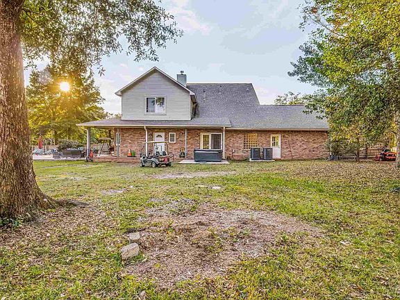 This 5-bedroom, 4-full-bath, 2-half-bath brick home on 8.03 acres offers plenty of space with 3,103 sq ft of living area. Highlights include a wrap-around porch, a 20x40 saltwater pool, an outdoor shower, and a full bath. The home features high-efficiency hurricane windows, a large great room with 9' ceilings, Pergo laminate flooring, and a cozy free-standing fireplace. The kitchen has granite countertops, stainless steel appliances, and a breakfast bar. The owner suite is downstairs with a walk-in closet, Jacuzzi tub, double vanity, and French doors. Upstairs contain 3 bedrooms and 2 full baths. Additional amenities include a 24x70 workshop, RV canopy with 30-amp plug . The home has been updated with a water heater (2023), HVAC, furnace and ducts (2022). There are two septic systems and a laundry chute. Perfect for those seeking privacy, acreage, and space for a large family or hobbies.