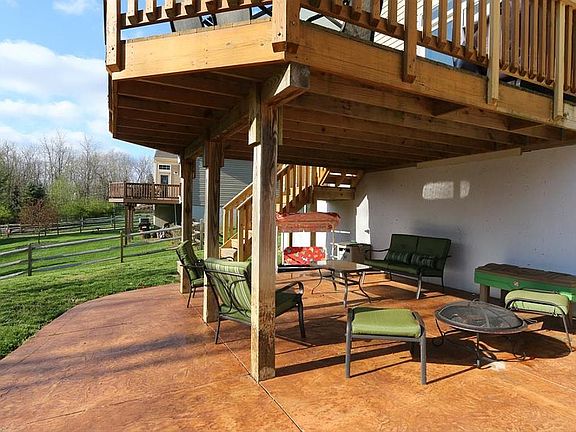 Cheerful & stylish home, open & airy feel. Kit w/upgrdd cabinets, lrg island & sunny brkfst area, all kit appls stay. Entertaining is a breeze w/large deck & LL stamped concrete patio. Great yard, prvt & treed. 2nd flr lndry. Relaxing master ste w/huge walk-in closet & designer bath. Walking trails, lake, creek at rear lot. Ovrszd & extra deep grg.