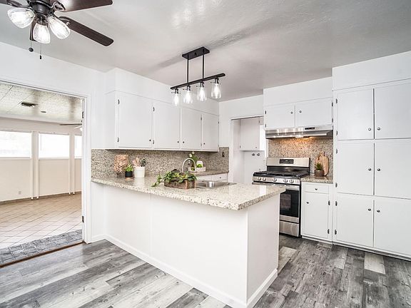 What curb appeal! Driving up to this home, you will immediately notice the brand new, large and modern front slatted covered patio where you will spend endless hours enjoying your morning coffee. There's also all new paint inside and out. Upon entering, you will love the updated kitchen too. It features warm, neutral granite countertops and new stainless stove top oven. There are beautiful natural wood floors throughout this home, plus new decorator laminate in kitchen and baths...and you must see these bathrooms: both are fully updated with gorgeous modern vanities, sinks/1 tub, fixtures, and lighting. There's a large family room that leads out to the very spacious backyard with tons of room to play. You will also enjoy the extra large bonus room just off the kitchen that could be a game or movie room, office, workout room, or anything you would like to make it. You'd better hurry and see this one quickly - all with easy access to the 168, shopping, and restaurants.