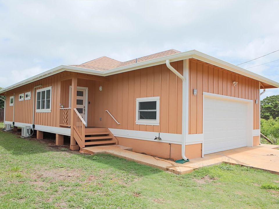Comfortable 3 bedroom 2 bathroom home built in 2016. Conveniently located near the entrance of Wailua Houselots, about 1 block off Kuhio Hwy. Walking distance to shops, restaurants, beaches, Kapaa Bike Path, Kinipopo Shopping Village, and Coconut Marketplace. Home features an open concept floor plan, split system a/c units, hardwood floors, and granite countertops. Also boasts 9-foot ceilings, recessed lighting, a wide hallway, and spacious bedrooms. Master bedroom has a walk-in closet and en-suite bathroom. Exterior Ring camera system adds security. Enclosed 2 car garage with high ceiling and built-in storage cabinets.