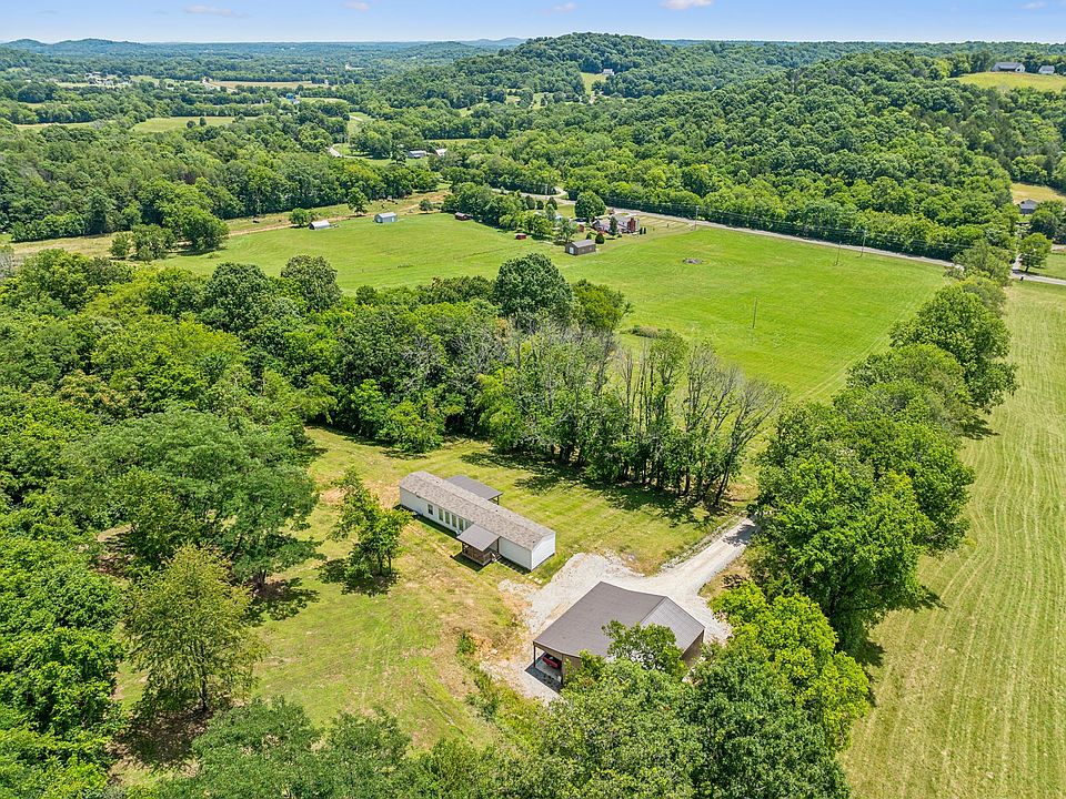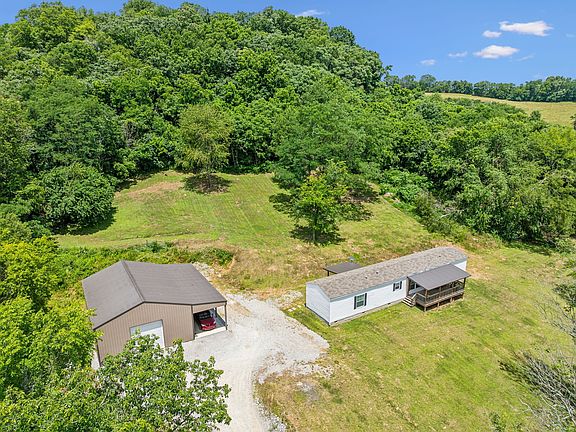 Terrific hilltop retreat with 3 bedrooms, 2 baths set on 7.5 private acres - this fantastic property is nicely maintained and offers a great open kitchen/living area and a wonderful primary bedroom and spacious bath. Barn doors and recessed lights throughout add the perfect finishing touches. The 30X40 shop building is top notch, offering workshop space, a large roll up door, loft storage and a generous rec room with electric fireplace. The rec room is well-furnished with a Brunswick pool table, 75" TV, oak bar, and Jack Daniels table and bar stools, all of which will convey with the property. So much to enjoy here and in such a beautiful setting!