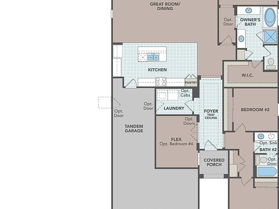It's the Belice - This home has 3 bedrooms + flex space, 2 baths and a 3 car garage. We're building this with a large walk-in shower at owner's bath with cultured marble surrounds, 12x8 sliding glass door that leads out to your extended covered patio. Tahoe slate cabinets throughout with 42'' uppers and 4 rollouts at pantry. AZT Della Terra quartz linen countertops at the enhanced kitchen island and matching backsplash. 8' tall interior doors, soft water loop and gas stub for future BBQ. Upgrade flooring with ceramic tile in all areas except bedrooms and closets and so much more. Estimated completion fall to winter of 2022.