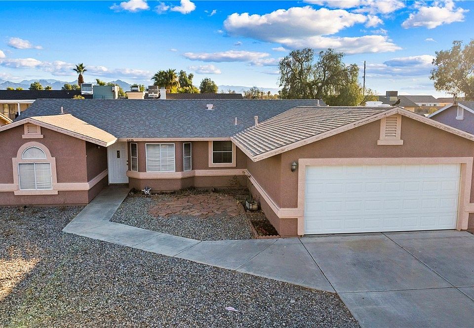 The perfect Ft. Mohave family home has hit the market. 3 bed 2 bath split floorplan in a homes-only neighborhood with no HOA! 1438 sq ft of living space with a 2-car garage. Great location, great layout -- this is a must see. Block wall backyard with side parking. Owners have added new flooring throughout. Fireplace in the family room with an open concept living/dining space. Indoor laundry with washer dryer included in the sale. Spacious primary suite! Easy to take care of exterior. This one will not last!