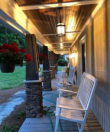 Beautiful "Hard Stucco" Craftsman style "Cape Cod," many upgrades. Wrap around porch with stained wood ceiling & stacked stone columns. Quartz counter tops, beautiful new cabinets, hardwoods, ceramic in baths and laundry. Meticulously maintained, fenced rear yard, Large deck. 2nd master on main / front, fantastic master addition on rear, master bath there done with seamless shower & custom vanity & more! "Ship lap" in several locations. Beautiful custom built-in bookshelves along rear of great room wall. Impressive beamed, vaulted ceiling in great room with amazing multi bulb light fixtures. Refrigerator, washer and dryer stays. Hardy Zoysia grass lawn is easy to maintain. Home has four accessible attic storage areas. Dining room currently staged as office. All windows have been replaced with vinyl thermal pane windows. Check school ratings on Greatschools.org