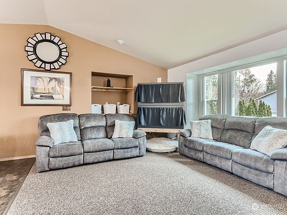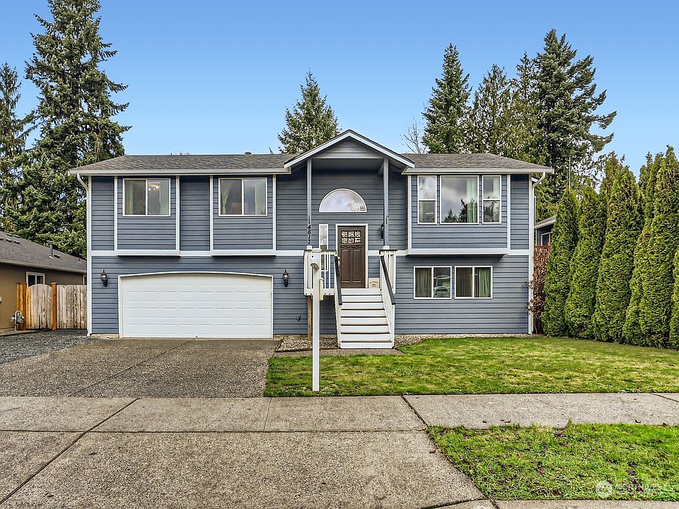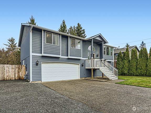 Radiating curb appeal, this Arlington home feels much bigger than the square footage indicates! This split-level lives like it has 5 bedrooms (3 bedrooms w/ closets + den + office) & boasts 3 full bathrooms. Tons of recent major updates include NEW: Ext paint, roof, gutters, fascia, front windows, furnace, air conditioner unit, refreshed bathrooms, some int paint, & more! Open kitchen w/ spacious island, plus newer microwave, dishwasher, & stove/oven. Beautiful, completely level 8,276 sqft lot w/ fully-fenced backyard that has 2 sheds, covered patio space, a fire pit, & garden area. Attached 2-car garage + additional gravel & driveway parking. Excellent location - Only mins to all the shopping & restaurants Smokey Point has to offer!
