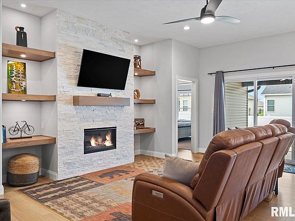 Experience the best in modern living when you settle into this gorgeous, like-new attached home in Pleasant Plains Schools and the newer Sloan Crossing subdivision. This home exudes fantastic curb appeal & offers a practical yet stylish layout with warm wood-like flooring through the living spaces, ultra-modern color schemes & beautiful finishes throughout. The heart of the home is a spacious, open kitchen ideal for hosting guests around the large Quartz island with features like high-end stainless appliances from Dick Van Dyke dual toned cabinetry & a bright white backsplash. A meticulously crafted interior is loaded w/customized elegance found in the crown molding, trayed ceilings & gorgeous mantle & built-ins flanking a stone fireplace focal point that stretches from floor to 10ft ceiling. An elegantly designed master suite offers ensuite deluxe full bath w/dual vanity & tiled walk in shower, plus the adorable en suite dressing or vanity space is in addition to a large w/i closet! Other perks include a convenient laundry room doubling as a mudroom entry w/drop zone & a charming covered patio in the privacy-fenced backyard. The real cherry on top is easily the full basement; plumbed for a future 3rd bath & egress equipped for expansion. This move-in-ready home is perfect for anyone seeking modern convenience in a prime location, minutes from everything. A multitude of new construction amenities will ensure energy efficiency & elegance in every detail for years to come.