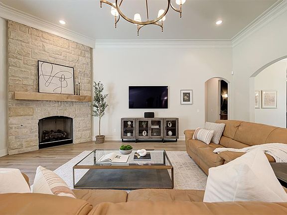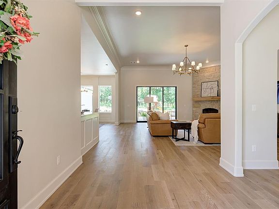 Meticulous craftsmanship meets modest elegance in this stunning Edmond home. How refreshing to see a timeless blend of fresh design, luxury finishes & a prime location all in one…not to mention a serene water view. Did we mention THIS VIEW…! Nestled on the crest of a lush, mature 1.5 acre lot, this home exudes quiet perfection. The rich grain and light tone of the 8-inch white oak floors that flow throughout are wear-resistant and add a sense of heritage to the interior. No detail was overlooked in the gourmet kitchen equipped w/ an oversized island, quartz countertops & commercial-grade appliances. The sprawling butler’s pantry offers versatility & add'l space for entertaining or catering larger gatherings. The fireside great room features seamless views of both the kitchen & dining, and sliding doors draw you outside to the expansive covered porch. Once outdoors, you unwind by simply enjoying the serene beauty of your surroundings. Getting creative with the well-equipped outdoor kitchen is also an option. If a rare retreat calls you, wander inside to your privately tucked away Primary Suite. Offering vaulted beams that grace the cathedral ceiling, a gorgeous walk-in closet and a remarkable en suite bathroom with dual vanities, a soaking tub and oversized shower, this primary suite is sure to impress. With a total of 4 en suite bedrooms, 5.5 bathrooms and all thoughtfully designed living spaces, this one-level residence is fully rounded out w/ a media room, bonus room, full pool bath & laundry room (a home organizer’s dream). Other amenities: oversized 3-car garage, Generac set-up, custom window treatments, storm shelter & luxury lighting. Designed for quality in both intimate & elaborate settings, this magnificent gem is not to be missed. Capture a rare opportunity to own an extraordinary property that combines luxury, functionality & natural beauty. This home is sure to exceed the expectations of any buyer looking for a well-appointed luxury home in Edmond.