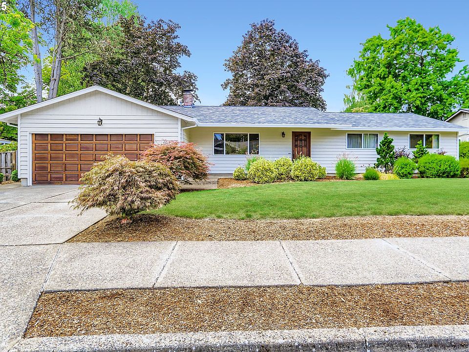 *Pending—open house canceled* One-level living on a spectacular Rock Creek lot! Ideally located on a quiet street, this spacious ranch offers an exceptionally private lot with an incredible park-like backyard. The fully fenced backyard features a large deck, mature landscaping with shade trees and seasonal flowering plants, expansive lawn, and new garden shed. The home has been meticulously maintained and thoughtfully updated with a fully remodeled kitchen featuring new white cabinetry, quartz counters, full-height tile backsplash, and new stainless steel appliances. The kitchen is completely open to the oversized family room, with new LVP flooring and a slider for convenient access to the deck and backyard. Large primary suite features attached bathroom with updated walk-in shower. There are two more sizable bedrooms, plus a second full bathroom with LVT flooring. High-quality construction with large room sizes and wide hallways, cedar siding, masonry floor-to-ceiling fireplace, spacious laundry room with half bath and built-ins, abundant storage, oversized two-car garage, and more! Recent updates include new architectural composition roof, recent Trane high-efficiency furnace, Carrier heat pump (2017), water heater (2017), vinyl windows, exterior paint, and just-stained front door and garage door. Fantastic location, just moments from THPRD trails and parks, Rock Creek Country Club, great schools, and local Washington County employers!