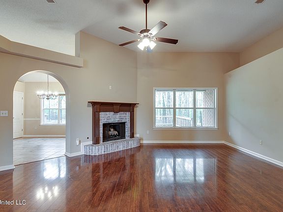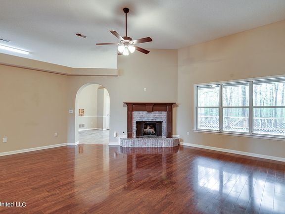 Well-maintained four bedroom and two bathroom home with approximately 2014 S.F. of conditioned space located just a short distance away from great dining locations and shopping in Olive Branch. Home is located off of Nail Road and has a large front yard and rear yard totaling about 1.35 acres in size. Home has wood floors throughout most of the rooms and tile in kitchen, bathroom, and laundry areas. Living Room, Kitchen and Dining Room have high ceilings that give the home a much more open and voluminous feeling. Home is equipped with decorative raised hearth fireplace, arched drywall openings, chair rail in select rooms, lots of plant ledges throughout, and ceiling fans to augment cooling. Kitchen has lots of cabinets, stainless appliances, and counters with backsplashes. The Laundry Room has cabinets above for storage which is convenient. The Primary Bedroom has sloped ceilings to add volume and a ceiling fan while the Primary Bathroom sports his and hers dual vanities, a large jetted tub, and a separate walk-in shower. Don't miss the large rear deck with plenty of room for entertaining friends and family. This is a must see for those looking in Olive Branch and want to be close to Snowden Grove sports complex and amphitheater as well as Silo Square. Check it out and make an appointment to see it before it is gone!