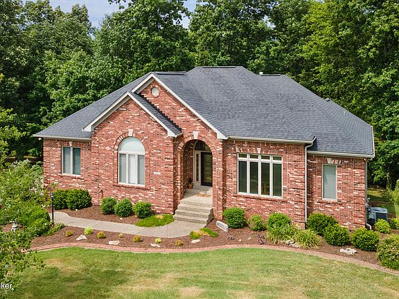 Inviting Walkout Ranch in Crestwood on 1.9 Acres next to the Locust Grove & East Oldham Middle Campus. As you enter foyer you will immediately notice the beautiful hardwood floors. Entertain in the bright & airy dining room which has floor to ceiling windows & tray ceiling. No Matter how many guests you are entertaining this kitchen will work for you! It has stacked microwave/wall oven, planning desk, wine rack, gas range, peninsula with seating, pantry, large island, plus an abundance of custom cabinets. Cozy up in the large & open great room which has a vaulted ceiling, beautiful built-in cabinets & bookshelves surrounding the fireplace. 18 Windows replaced 2024 Primary suite has a sitting area, walk-in closet, & ensuite bath with a double vanity, jetted garden tub, over-sized shower, separate water closet. The other bedrooms on the main level share a jack- and-jill bathroom with a door separating the vanity/sink area. The entertainment possibilities continue in finished walkout basement. There is a chair lift installed so the steps become a non-issue. The large family room has a fireplace & is open to another large room perfect for a pool table or game room-Could possibly be an additional bedroom with an attached full bath. There is a large storage area that could be another workshop space. The oversized garage has an attached workshop for all of your tools and hobbies! Decks and patios make outdoor living great on this lovely landscaped home-site! There is even a bridge over the creek to access the full 1.9 wooded acres. All this and close to I-71, Shopping and Award-Winning Oldham County Schools. Water Heater 2024 and this is a quick move-in property.