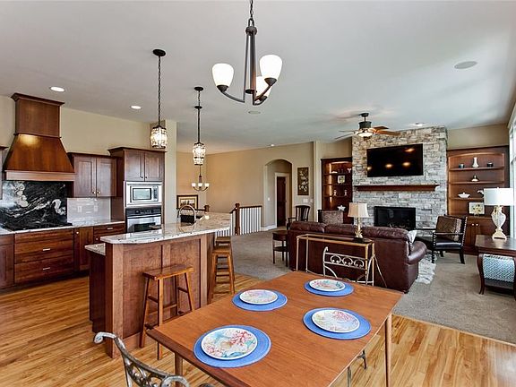 Former 2007 Sattler Parade Home that sellers have updated and added even more upgrades like a stacked stone gas fireplace, granite, gas cooktop, stainless steel appliances in the large eat-in kitchen w/ breakfast bar, etc. 10 ft ceilings on main level w/ windows and transoms to take in the views, 9 ft ceilings in walk out lower level. Fabulous full bar area in LL plus huge rec/TV area!! Solid cherry doors and beautiful wood work through-out. Master has tray ceiling w/ spa like bath, large walk-in closet and convenient access to the laundry room. 3 car garage is oversized 31 X 24! This home backs to Xavier high school green areas and is very private, great location on a cul-de-sac close to shopping, restaurants, and large area employers. Formal dining room could have doors added easily and convert to a den or 5th bedroom. Move in ready, neutral decor!
