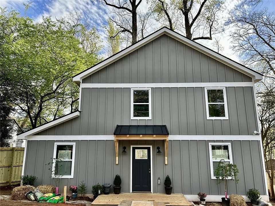 New construction on a double lot set for completion mid April. Unique location in the village of Pine Lake. Sitting on a hill overlooking both Pine Lake and the feeder stream, it invokes memories of mountain resort living yet minutes from the metro Atlanta suburbs, I-85, I-285, Stone Mountain Freeway, Decatur Square, and MARTA. Pine Lake is a quiet enclave of single family homes situated around the lake with a clubhouse, beach, and walking trails. This is one of Atlanta's best kept secrets. The home features 5 bedrooms and 3 1/2 baths. The main level has a large "Mini Primary bedroom" with private bath as well as a flex bedroom that can be a den or office. The open floorplan has an inviting living space with a decorative stone fireplace from the original home, a dining area, powder room, and an open kitchen with upscale appliances including a refrigerator. The French doors as well as the walls of windows open up to a breathtaking view of the lake and a canopy of trees from the oversized cantilevered wrap around deck with access from three sides of the home. The lot gently slopes down to the stream allowing for an outdoor patio and firepit area. The top floor features a huge primary bedroom with vaulted ceilings and a wall of windows featuring a view of the lake. The 4 piece primary bath includes a claw foot soaking tub, and walk in shower. There are two closets in the Primary bedroom, a large walk in and smaller specialty closet. In addition there are 2 other right sized bedrooms and a hall bath to service them. The laundry is also located on the top floor. The home is built on a walk out, daylight basement that can be finished with a slab and walls for additional storage. The Property includes a freestanding 1 car garage that is perfect for artists, craftsmen, hobbyists, horticulture, or party room. Let your imagination go wild. Showings are by appointment only by contacting the listing agent.
