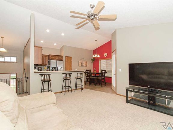 Gorgeous 4 Bedroom 3 Bath Home with 3 Car Garage in Southwest Sioux Falls just around the corner from R.F. Pettigrew Elementary and Southern Vistas Park! This beautiful home fulfills all of the checkboxes with a private master bath, 3 car garage, and covered rear deck. The spacious main floor features vaulted ceilings and a wide open floor plan. Kitchen showcases dark stained birch cabinets with stainless steel appliances, convenient pantry closet, 2-tiered breakfast bar, and gooseneck faucet. Vaulted dining room with door to covered backyard deck. Well appointed master suite with master bath and generous walk-in closet. Lower level is finely finished with 2 bedrooms, a full bath with tile flooring, family room and garden windows all around! Lower level family room is adorned with 2 panel doors, custom built-ins, and a cozy fireplace with tile facade. Top all of these fabulous features off with a 3 car garage and underground sprinklers. This home is a stunner and is sure to please.