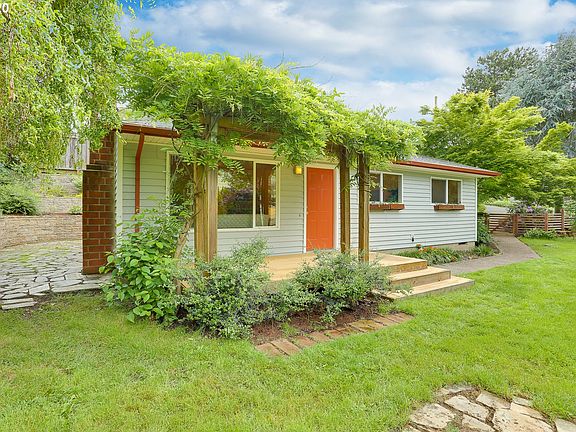 Mid-century Reed starter ranch in excellent condition with an x-large very private fenced lot. This home has 2 bedrooms, a bonus room (pass-through), 1 bath, living, dining, separate laundry room, and eat-in kitchen. Featuring oak floors, fireplace with high-eff wood-burning insert, and vintage light fixtures. Enjoy a southern perspective (perfect for solar!) with large yard, firepit, and lovely terraced landscaping. Gardener's delight! Close to busline, Max, Kenilworth Park & Reed College. [Home Energy Score = 1. HES Report at https://rpt.greenbuildingregistry.com/hes/OR10184033]