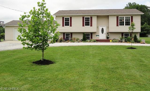 Spacious 4 bedroom, 2 full bath home on picturesque 1+ acre with finished lower level. Abundant cabinet space in kitchen and island. Open living/dining rooms. Large 2 tier deck overlooking endless wooded view. Freshly painted neutral throughout. Carpets cleaned throughout 2015. Garage finished dry walled/ painted 2013 (30x20) + 200 amp electrical panel 2010. Sump pump 2013. Finished lower level and roof 2008. Septic, heat-pump, central air 2007. Hot water heater 2011. Baseboard heaters installed lower level 2014. 15+ trees planted and landscaped 2014. Addition built onto playset 2012. Water softener neutralizer tank 2014. Front porch and 2 tier deck painted/stained 2015. Horseshoe driveway with ample space. Close proximity to lakes, parks, camping (Lake Milton & West Branch State Park). Call today, this one won't last long!