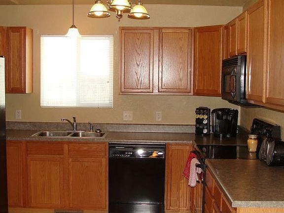 Super comfortable, open living style home, with a large bay window seat and a big dining area. Your new, U-shaped kitchen comes complete with sharp looking black appliances. The vaulted ceilings are finished with a custom, crows foot texture and there is plenty of room to add a fourth bedroom downstairs where the office space is located. This fenced back yard is ready for pets and children to play and has a three zone sprinkler system. The finished two car garage comes with extra storage racks on the ceiling. XM Wireless radio antennae stays with the house. Call for your private showing today!