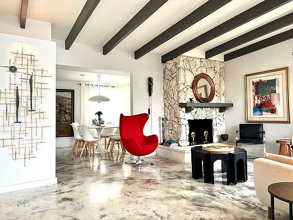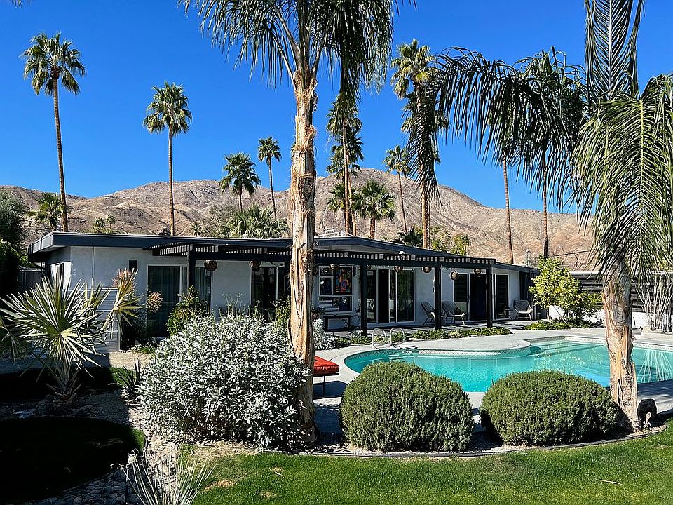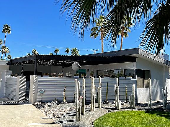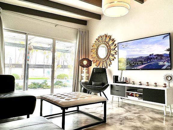 Soak up the Desert Splendor in this very private oasis. Picture Perfect Palm Desert retreat! From the gated driveway, you enter into a covered and private west-facing patio. Once inside you'll appreciate the light and bright feel, the stained concrete floors, midcentury decor, and skylights creating so many fun living areas. The main living room has a fireplace and is open to the kitchen and dining area. A private entry door in this section takes you to the primary suite with a Dressing room remodeled bath and bedroom with a slider to the amazing backyard. Down a hallway by the kitchen, you will find the second bedroom and bath plus a large Den with a slider to the backyard. Outdoors you will find the Oasis of your dreams with a beautiful sparkling pool, dining areas, BBQ center seating areas with firepits, and lots of places to soak up the sun. There is also a fun-covered and partially enclosed space used as a pool cabana. So many ways to relax and enjoy this premium property in the best location. If you ever want to go out you'll find yourself minutes from some of the best shopping, dining, and entertainment in the Coachella Valley. Thinking of hiking? you are close to Cahuilla Park just down the street. Golf, you are minutes from dozens of golf courses. Perfection in the Desert lives here! Available for rentals of 30 days or more. Currently available immediately call soon.